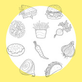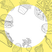 Ulicy meksykańskie jedzenie. Wektor ilustracja koło z ręcznie rysowane elementy. Projekt koncepcyjny dla café, restauracja dekoracji.