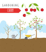 Szablon graficzny wiśnia korzystnych cech. Ogrodnictwo, rolnictwo infografikę, jak rośnie. Projekt płaski. Ilustracja wektorowa