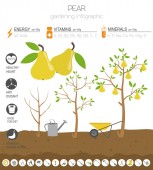 Szablon graficzny moreli korzystnych cech. Ogrodnictwo, rolnictwo infografikę, jak rośnie. Projekt płaski. Ilustracja wektorowa