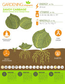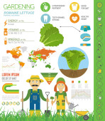 Romanie sałata szablon graficzny korzystne cechy. Ogrodnictwo, rolnictwo infografikę, jak rośnie. Projekt płaski. Ilustracja wektorowa
