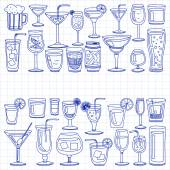 Wektor zestaw popularne koktajle dla menu. Ikony stylu Doodle.