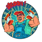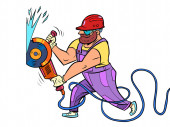 profesjonalny pracownik spawacza. superbohater z butli gazowych