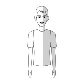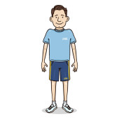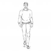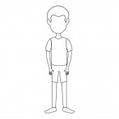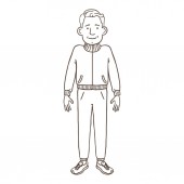 Kontur kreskówka wektor - młody człowiek w strój sportowy