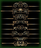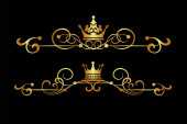 wektor zestaw. wiktoriański przewija i korony. Złote elementy dekoracyjne.
