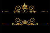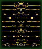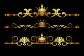 wektor zestaw. wiktoriański przewija i korony. Złote elementy dekoracyjne.