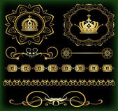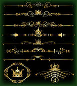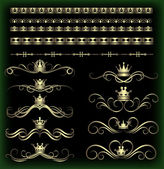 wektor zestaw. wiktoriański przewija i korony. Złote elementy dekoracyjne.