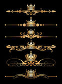 wektor zestaw. wiktoriański przewija i korony. Złote elementy dekoracyjne.