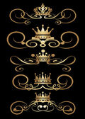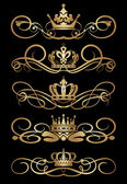 wektor zestaw. wiktoriański przewija i korony. Złote elementy dekoracyjne.