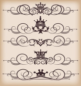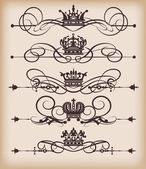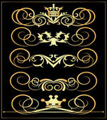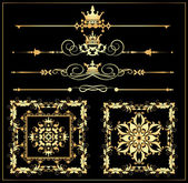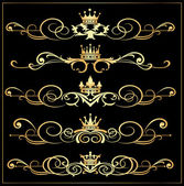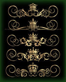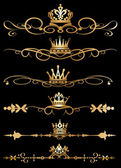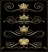 wektor zestaw. wiktoriański przewija i korony. Złote elementy dekoracyjne.