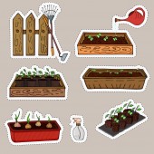 Zdjęcie "Drewniane pudełka z sadzonki młodych roślin i cebuli do ogrodnictwa. Wektor" może być wykorzystywane do celów osobistych i komercyjnych zgodnie z warunkami zakupionej licencji Royalty-free. Obraz jest dostępny do pobrania w jakości wysokiej rozdzielczości do 5760x3840.
