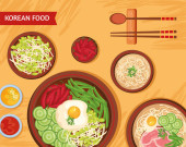 Bibimbap w misce na widok czarny drewno blat. Tło żywności w Korei.