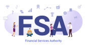 FSA, urząd regulacji rynków finansowych. Koncepcja z ikony, litery i słowa kluczowe. Ilustracja wektorowa płaski. Na białym tle.