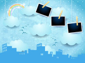 Zdjęcie "Surrealistyczny krajobraz z skyline i deszcz, ilustracji wektorowych " może być wykorzystywane do celów osobistych i komercyjnych zgodnie z warunkami zakupionej licencji Royalty-free. Obraz jest dostępny do pobrania w jakości wysokiej rozdzielczości do 5760x3840.