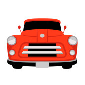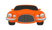 ilustracja wektorowa, płaski, klasyczny samochód, widok z przodu