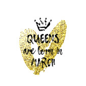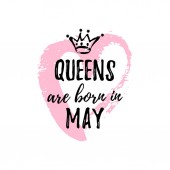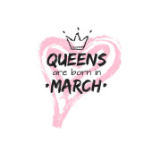 Popularne frazy Queens rodzą się w marcu z freehand korony i serca. Szablon projektu dla karty z pozdrowieniami, congratulation wiadomość, t-shirt, pocztówka, Produkcja druku wielkoformatowego.