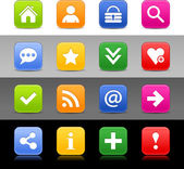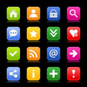 16 popularne kolory ikona ze znakiem podstawowym. proste zaokrąglony kształt kwadrat szklisty internet przycisk na szarym tle. nowoczesne nowoczesne proste.