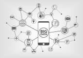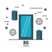 Pojęcie danych big data z ręki trzymającej nowoczesne ramki wolna inteligentny telefon