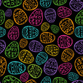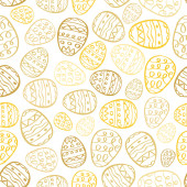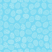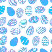 Szczęśliwy tło Wielkanoc. Niebieskie jajka kreskówka doodle wydruku. Wakacje ręcznie rysowane wzór bez szwu