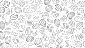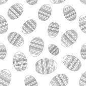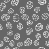 Szczęśliwy tło Wielkanoc. Szary i biały jaja cartoon doodle print. Wakacje ręcznie rysowane wzór bez szwu