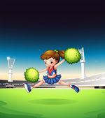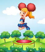 cheerleaderka skoki z jej zielony wieeeelki powyżej trampolina