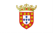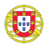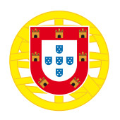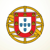 Środku herb Portugalii. Na białym tle symbol na białym tle. Ilustracja wektorowa znak