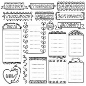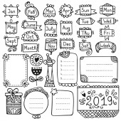 Kula dziennika ręcznie rysowane elementy wektorowe dla notebooków, pamiętnik i planowania. Doodle zestaw klatek na białym tle.