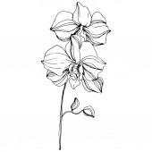 Wektor monochromatyczne storczyków z liści na białym tle. Grawerowane atrament sztuki.