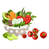 Zdjęcie "Sałatka pyszne świeże narządów w misce, ilustracji wektorowych" może być wykorzystywane do celów osobistych i komercyjnych zgodnie z warunkami zakupionej licencji Royalty-free. Obraz jest dostępny do pobrania w jakości wysokiej rozdzielczości do 5760x3840.