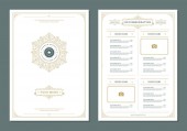 Restaurant menu Projekt i etykieta wektor szablon Broszura. Ilustracja i ornament ozdoba Taca.