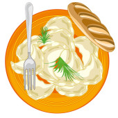 Wektor ilustracja mięso danie na talerzu makaron i szynka