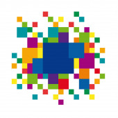 Wektor logo cyfrowy infinite z pikseli. Koncepcja pracy zespołowej i Unii