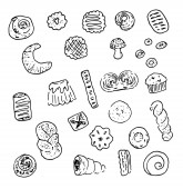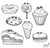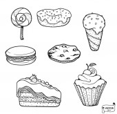 Zdjęcie "Wektorowa. Zestaw ikon słodycze ręcznie rysowane doodle. Deser ilustracje ciasta, ciasto, ciastko, cukierki, lizak, makaronik, Pączek" może być wykorzystywane do celów osobistych i komercyjnych zgodnie z warunkami zakupionej licencji Royalty-free. Obraz jest dostępny do pobrania w jakości wysokiej rozdzielczości do 5760x3840.