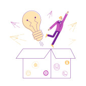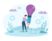 Zdjęcie "Postacie ludzi biznesu, latające w powietrzu balon w poszukiwaniu nowych idei. Rozwoju kariery super biznesmen. Rozwiązań i innowacji koncepcja z żarówką. Ilustracja wektorowa" może być wykorzystywane do celów osobistych i komercyjnych zgodnie z warunkami zakupionej licencji Royalty-free. Obraz jest dostępny do pobrania w jakości wysokiej rozdzielczości do 5760x3840.