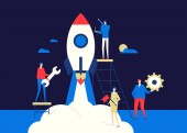 Zdjęcie "Postacie ludzi biznesu, latające w powietrzu balon w poszukiwaniu nowych idei. Rozwoju kariery super biznesmen. Rozwiązań i innowacji koncepcja z żarówką. Ilustracja wektorowa" może być wykorzystywane do celów osobistych i komercyjnych zgodnie z warunkami zakupionej licencji Royalty-free. Obraz jest dostępny do pobrania w jakości wysokiej rozdzielczości do 5760x3840.