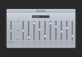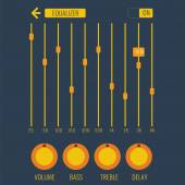 Korektor graficzny programu media player zawierający: panel equalizera, przycisk 3d, strukturalnym, podłoże ze stali nierdzewnej, dwa projekty aplikacji audio, ilustracja wektorowa eps10