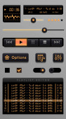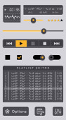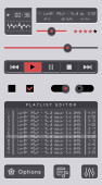 odtwarzacz multimedialny, zawierający: Regulacja głośności, przycisk 3d, strukturalnym, podłoże ze stali nierdzewnej, dwa projekty aplikacji audio, ilustracja wektorowa eps10