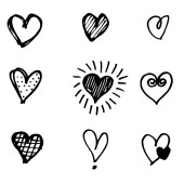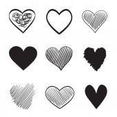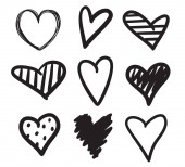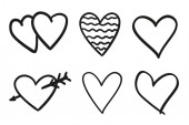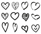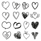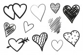 Ręcznie rysowane grunge serca na na białym tle. Zestaw znaków miłości. Unikalne obrazu dla projektu. Czarno-biały ilustracja. Elementy konstrukcji