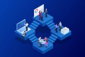 Izometryczny online lejka sprzedaży generacji, generowania klienta, marketingu cyfrowego i e biznes koncepcja technologii. Szablon strony docelowej dla sieci web. Internet marketing ilustracja wektorowa