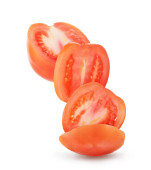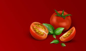 Czerwone pomidory cherry. Pomidory całe, pół pomidora, ćwierć pomidora. 3D realistyczne wektor ilustracja na białym tle.