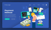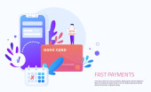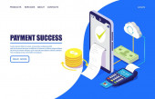 Izometryczne projektowanie koncepcja rozwiązania technologii mobilnych na górze z płatności online. Gradientu tła i cyfrowy wykres wykresu cienka linia. Wektor ilustrują.