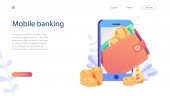 Koncepcji płatności online karty, łatwe płatności z postaciami ludzi. Łatwa edycja i Dostosuj, Money transfer, koncepcji Mobile portfel dla aplikacji mobilnej, strony docelowej, banerów, prezentacji