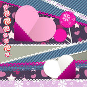 wektor zestaw serca i 4 bezszwowe tło wzorców w jasno-różowy