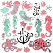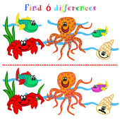 Znajdź pięć różnic. Kotwica z ośmiornicy kreskówka kolorowy na białym tle postać