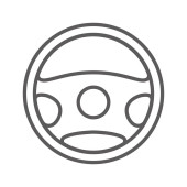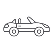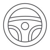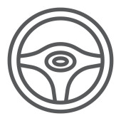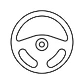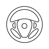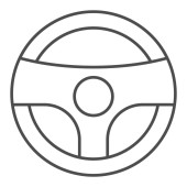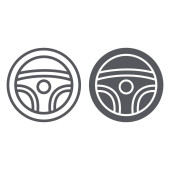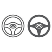 Ikona cienka linia kierownicy, auto i jazdy, znak koła samochodu, grafika wektorowa, liniowy model na białym tle.