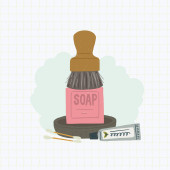 Rano, dbanie o siebie procedurze obiekty do mycia się zestaw. Ikony stylu płaskiej szczoteczki do zębów, pasta do zębów tube, śmietanka tube, zielony kubek i mydelniczką SVARTSÖN. Dla zero odpadów umysły przyjazny styl życia i eco