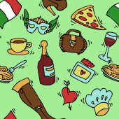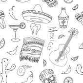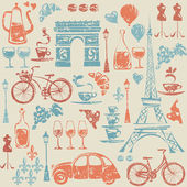Szkicu, zestaw atrybutów francuski. Beret, Wieża Eiffla, butelkę szampana, chleb, szyi szalik i wąsy na stronie notesu