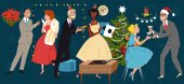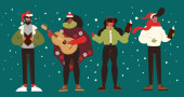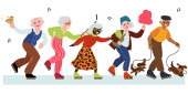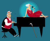 Starsi ludzie z okazji święta zima i śpiewając karaoke, ilustracja wektorowa Eps 8