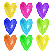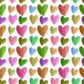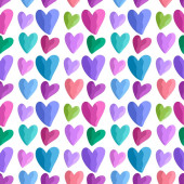 Akwarela bezszwowe wzór wielobarwny serca na białym tle. Miłość akwarela bezszwowe tło z sercem.