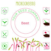Microgreens buraków. Projektowanie opakowań materiału siewnego, okrągły element w centrum