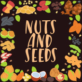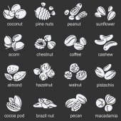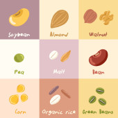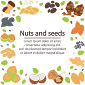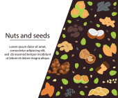 Kolorowe ikony z różnych orzechy i nasiona. Koncepcja zdrowej żywności ekologicznej. Tło wektor wzór